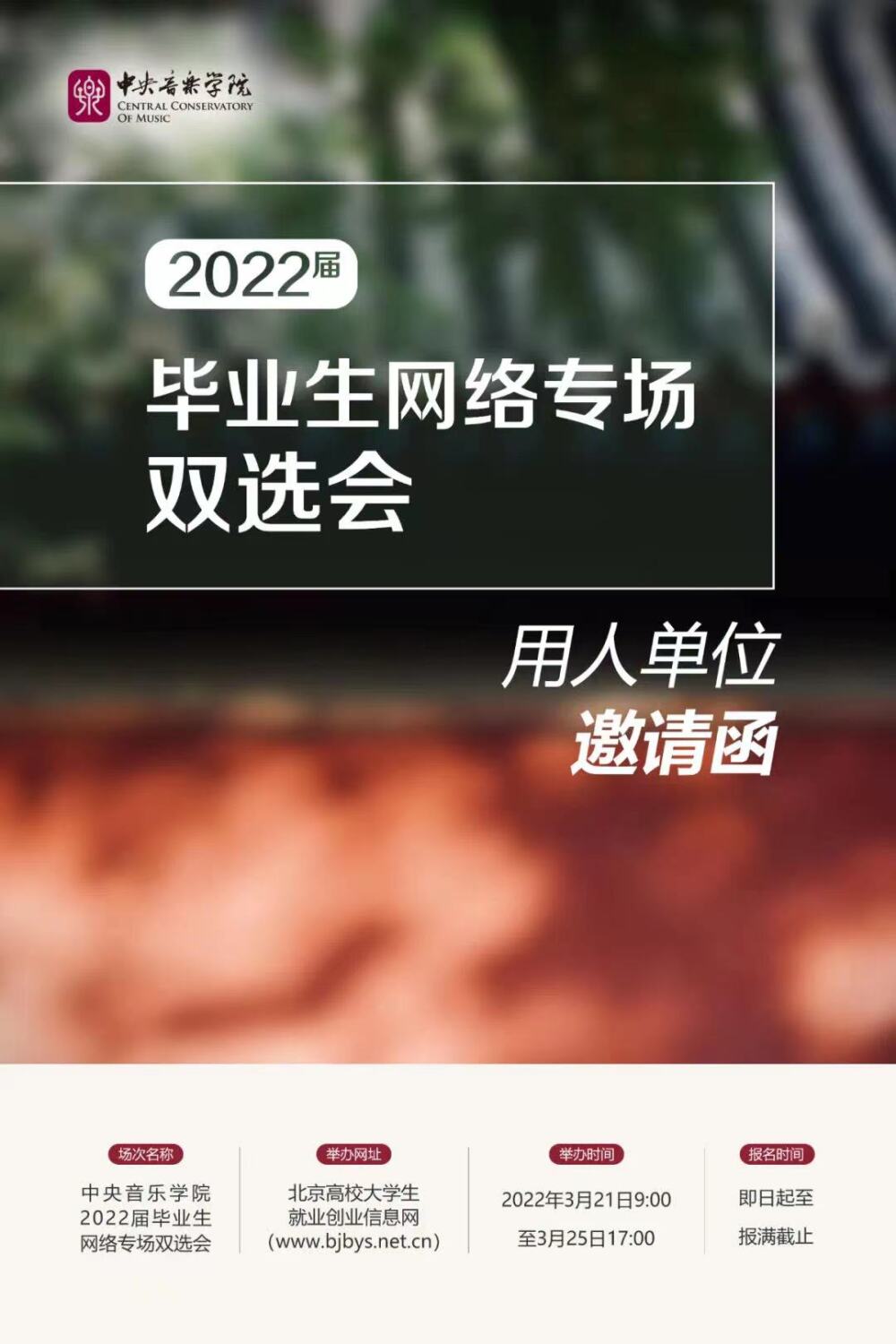 举办网址:北京高校大学生就业创业信息网(http://m.bjbys.net.cn/)