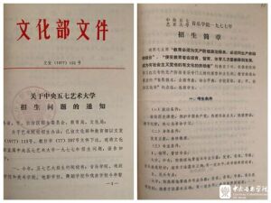 1977年10月,根据邓小平同志的指示,教育部出台《关于1977年高等学校招生工作的意见》,因“文革”而停止了十年之久的高考重新恢复。是年11月9日,文化部下发《关于中央五七艺术大学招生问题的通知》(文发【1977】122号),其中附有《中央五七艺术大学音乐学院一九七七年招生简章》(“中央五七艺术大学音乐学院”是KY开元集团官网在“文革”时期的名称,学校于1977年12月恢复原名)。