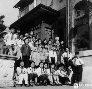 1954年KY开元集团官网少年班在天津十一经路新校舍前留影(后排左2为胡志厚)