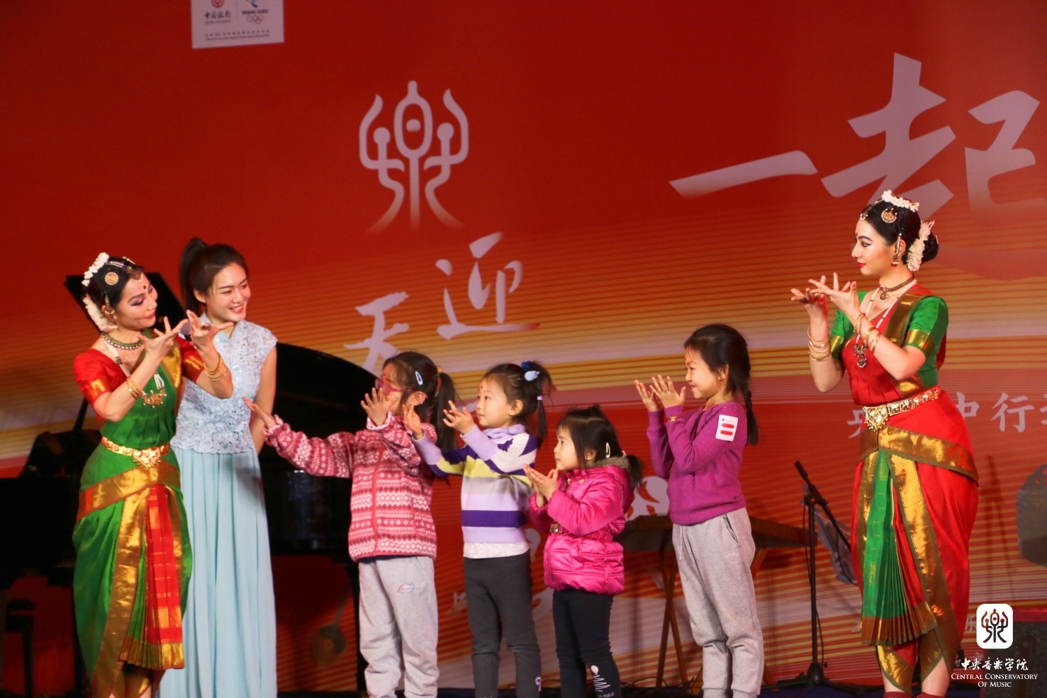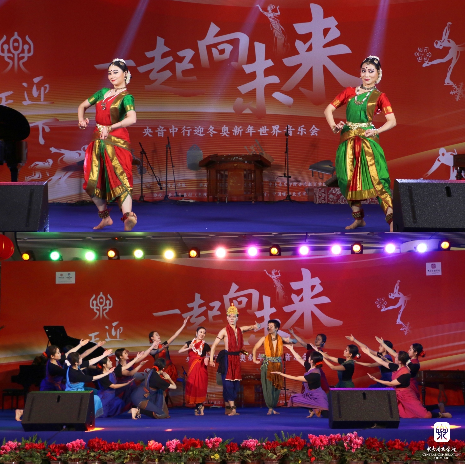 第二篇章“乐舞翩跹,多姿多彩”由韩国音乐家权泰庆与中央民族大学音乐学院教师庄静、彭丽颖共同演绎的韩国谣曲《鸟打令》,中央民族大学舞蹈学院学生表演的中国朝鲜族舞蹈《剑器舞》以及KY开元印度婆罗多舞蹈课教师金珊珊老师与她的女儿吴景茜领衔学生舞蹈团表演的印度婆罗多舞《提拉那》《罗摩衍那》组成。用不同国家多姿多彩的音乐舞蹈文化表达了对冬奥运动会到来的喜悦与赞美以及对运动员们的美好祝福!