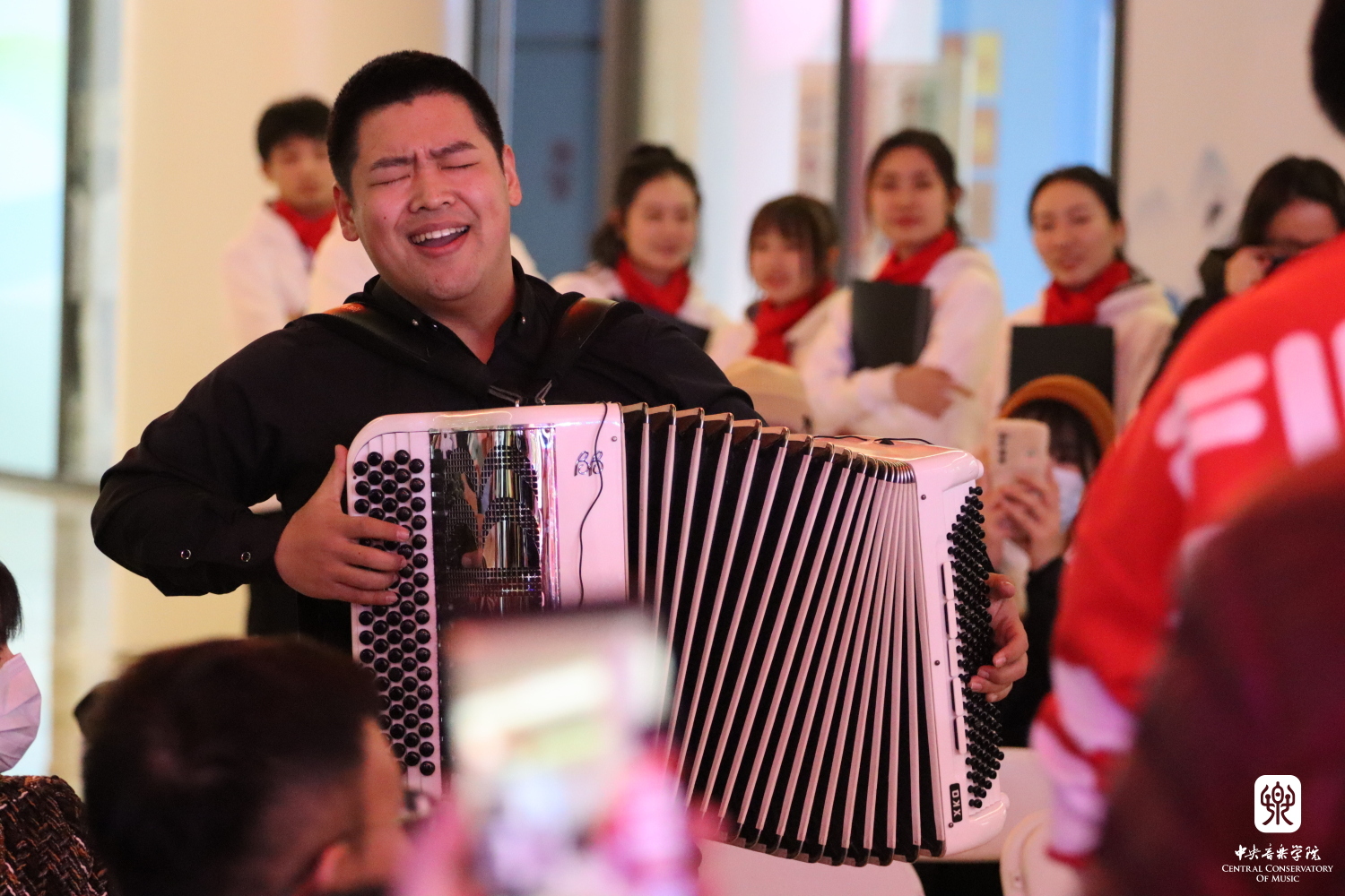 第四篇章“激情飞扬,和合之美”由钢琴系青年教师许可卿领衔的“和合”室内乐团演奏的《俄罗斯风情》和《花之探戈》《探个够》组成。具有历史感的手风琴带着听众找回了那些令人难以忘怀的美好时光。冰火相容、激情四射的探戈音乐让观众仿佛置身充满力量与节奏动感的冰上运动之中。