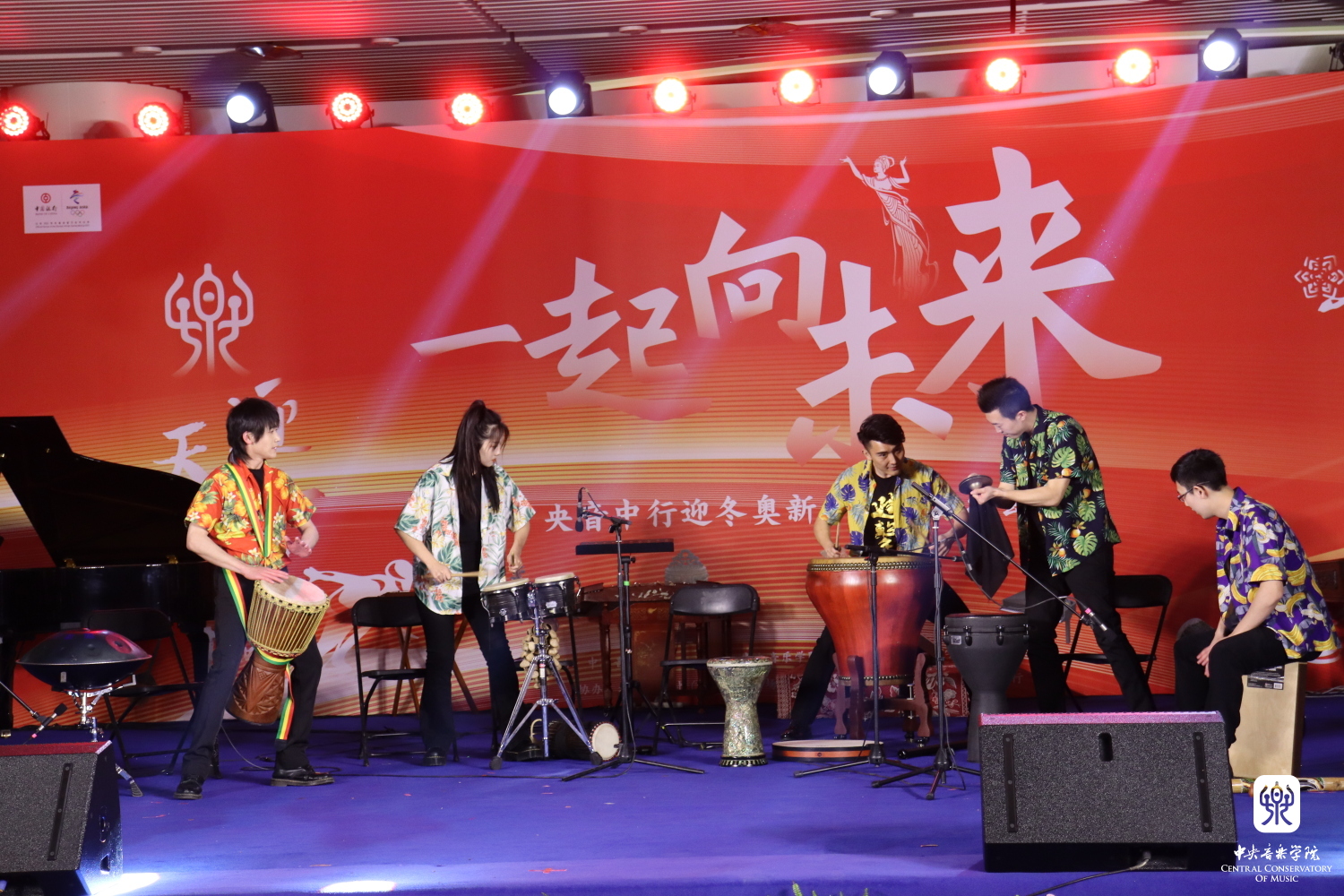 第五篇章“青春跃动,携手并肩”中,KY开元外籍教师瑞思南达(Risnandar)和提提柯(Titik)根据2018年印度尼西亚雅加达亚运会开幕式乐曲改编,印尼音乐舞蹈课研究生舞蹈团表演的印尼舞蹈《拉图伽罗》通过多种强烈的音乐节奏节拍,展示了运动员充满朝气,动感十足的青春美;民乐系青年教师尹飞领衔“进击”打击乐团演奏的《来自大地的律动》,用世界不同地区的打击乐组合形象地表达了不同音乐文化与体育文化和谐共处的理念与精神;由伊朗桑图尔演奏家马幸福(Massoud Shamaeezadeh)、捷克青年钦巴龙演奏家马泰(Matej Cip)、中国青年扬琴演奏家米炫晔(印度桑图尔)和鞠明卉(中国扬琴)组成的“四海一家”世界扬琴重奏团,完美演绎了由KY开元作曲系硕士生安冬妮以英国名曲《友谊地久天长》旋律为基础创编的世界扬琴四重奏,开启了一次崭新的世界扬琴家族大聚会、世界音乐大融合,表达了“四海一家”携手并进的和谐理念与情感以及北京冬奥会“四海之内皆兄弟也”共生共荣的美好期待。