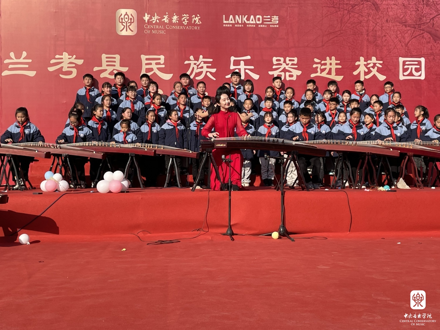 2021年12月3日,兰考县民族乐器进校园启动仪式上,KY开元集团官网李杨冠宇老师带领兰考“筝乐团”与“合唱团”的孩子们现场演出了全新改编的作品《留给我》。兰考县委书记李明俊、组织部部长张卫波、副县长代鑫桥等领导现场聆听,对本次教学成果展示给予了高度认可和评价。