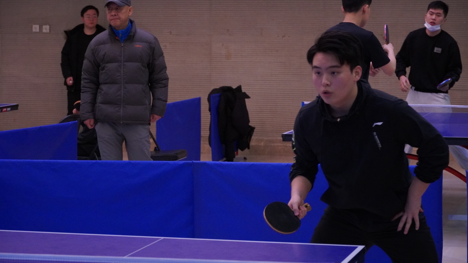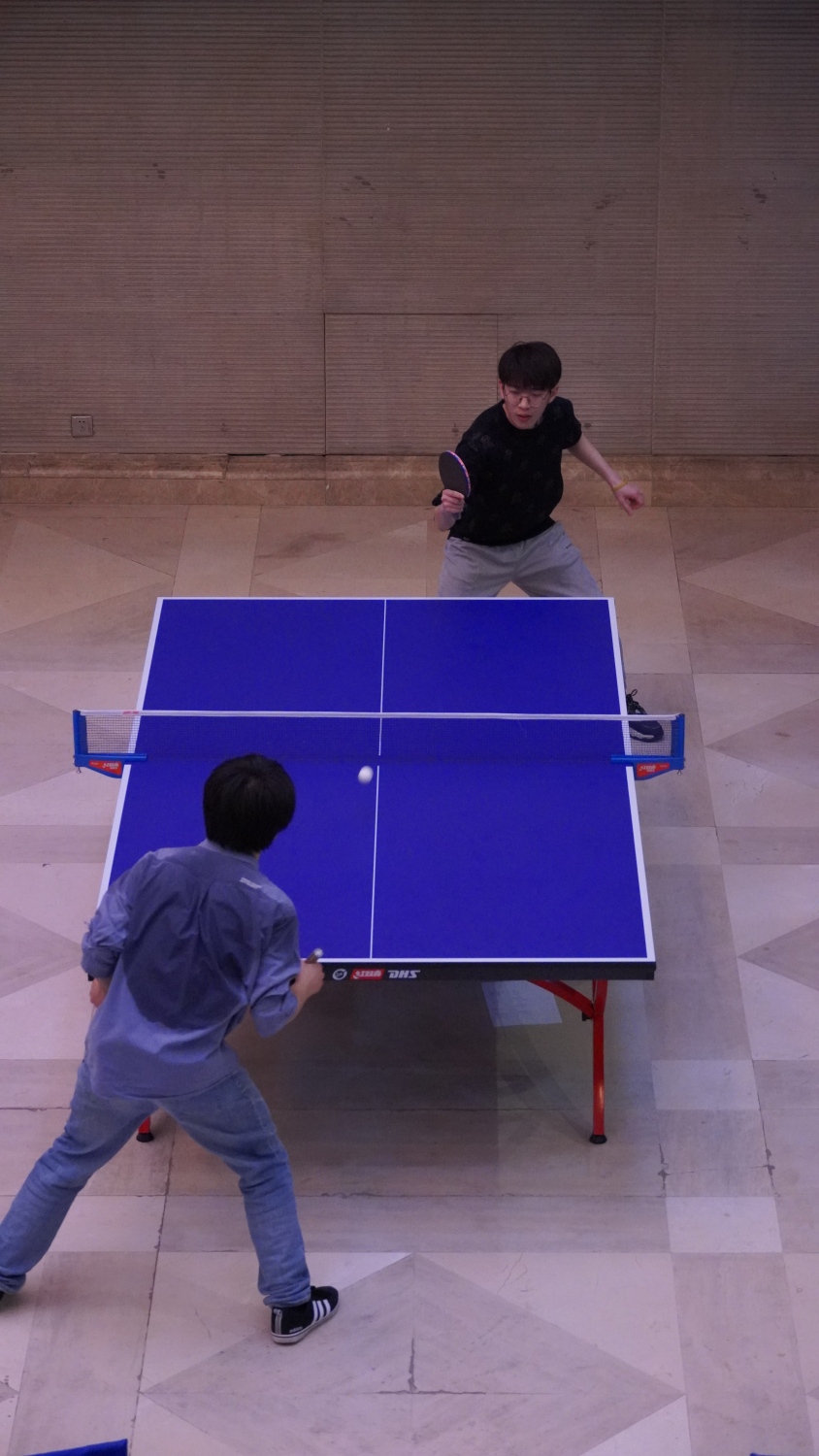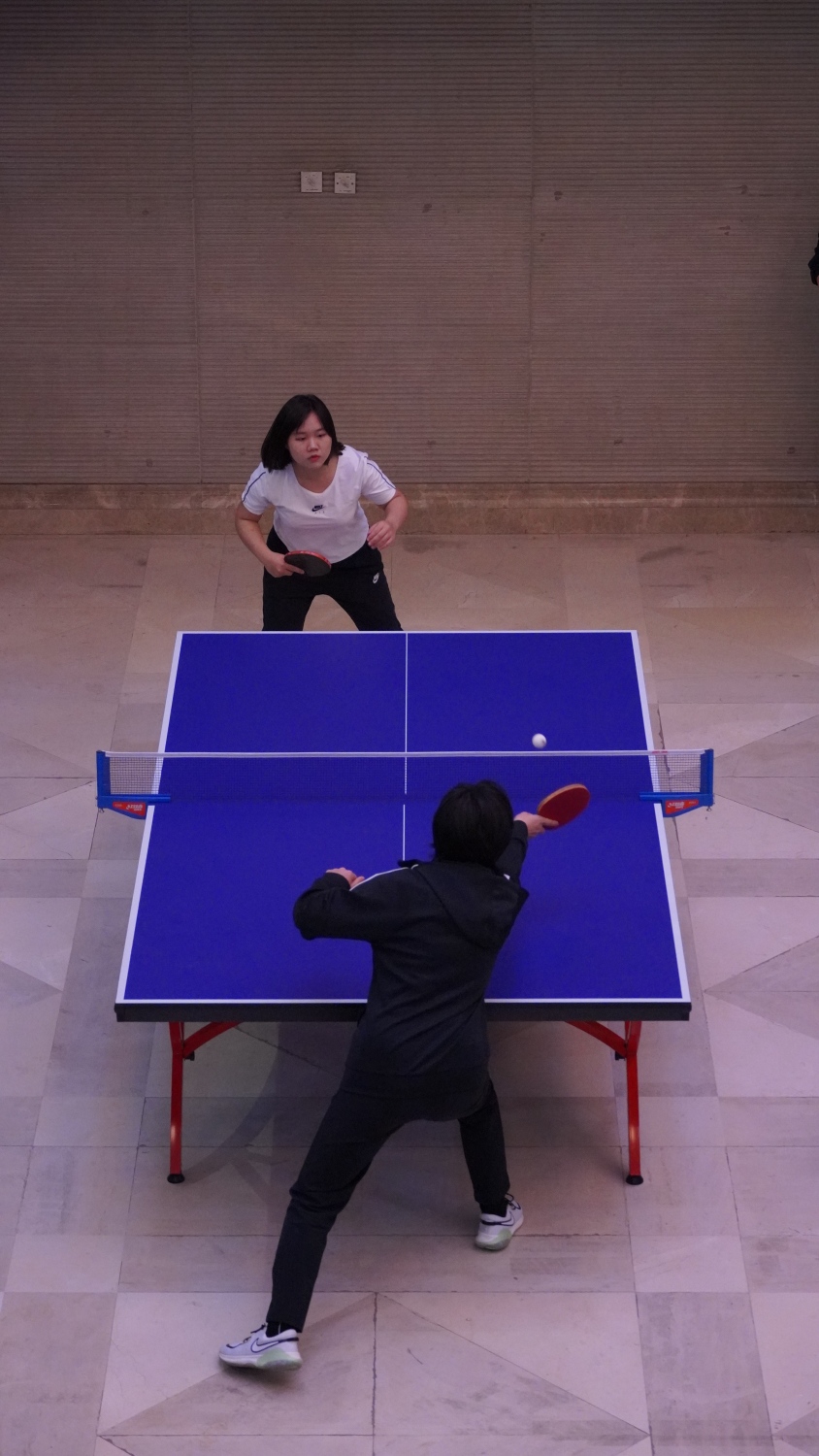 室外,寒阳斜风作晓冬;室内,各球台选手们“斗力频催鼓,争都更上筹”,你来我往,方寸战场各显神通:快攻、推挡、大力扣杀、弧圈球,球拍起落之间,精彩的攻防对决不时上演,引来阵阵喝彩,现场气氛被烘托得紧张热烈。女选手们的飒爽英姿备受瞩目,音教学院刘一诺近乎于专业选手的水准为本届比赛提供了最为难忘的高光时刻。