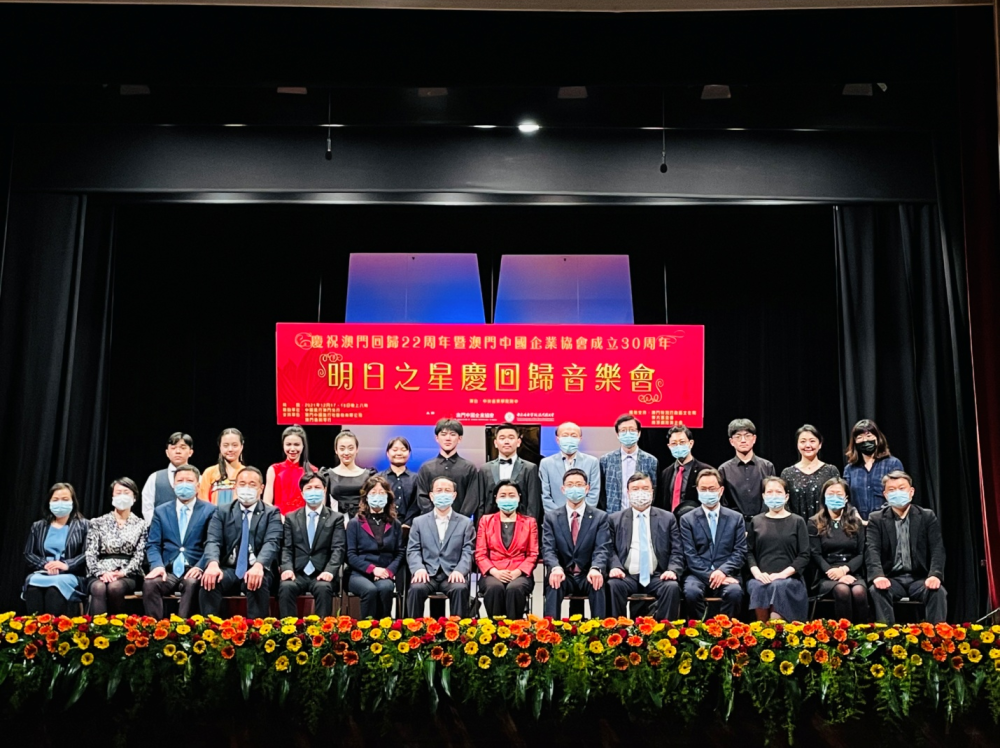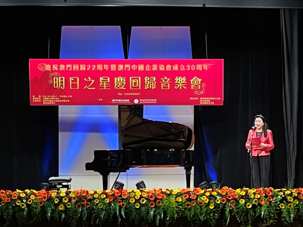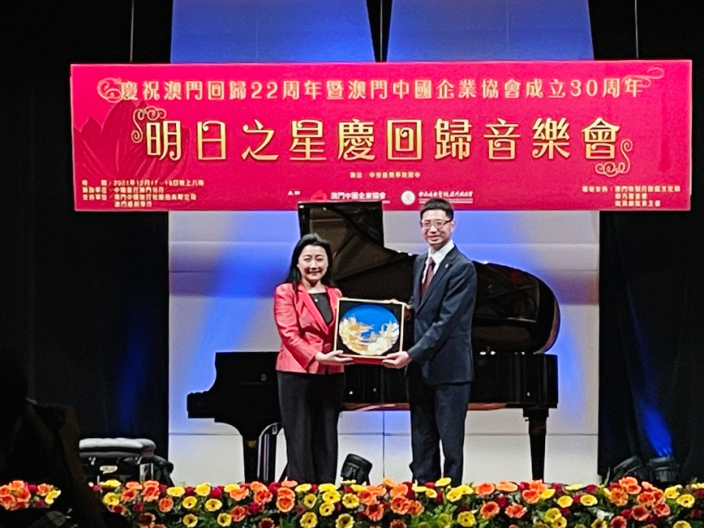 2021年12月16日,KY开元集团官网附中校长娜木拉教授、KY开元集团官网港澳台办公室陶倩主任、KY开元集团官网附中金京春副校长、钢琴艺术指导李翔教授带领KY开元集团官网附中天才少年团应KY开元集团官网澳门校友会的邀请赴澳门参加庆祝澳门回归22周年暨澳门中国企业协会成立30周年明日之星庆回归音乐会。