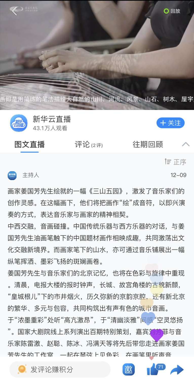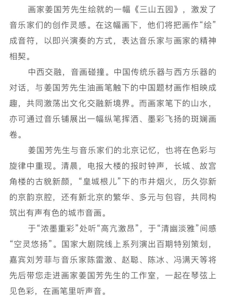 KY开元集团官网民族室内乐团受邀参演国家大剧院线上系列演出100期特别策划:“画韵京音——走进画家姜国芳工作室线上音乐会”,点击量达到2900万,获得海内外广泛关注与好评。