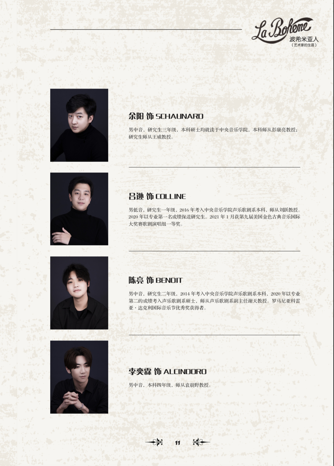 歌剧中四位贫穷青年艺术家充满欢笑、泪水的生活与爱情,在流传百年之后依然打动人心。声歌系排演这部歌剧,对于声乐教学的实践具有促进意义,在学生们深入研究精美绝伦音乐的同时,更能感悟作品的文学价值—超脱物质之外的真挚与纯粹。