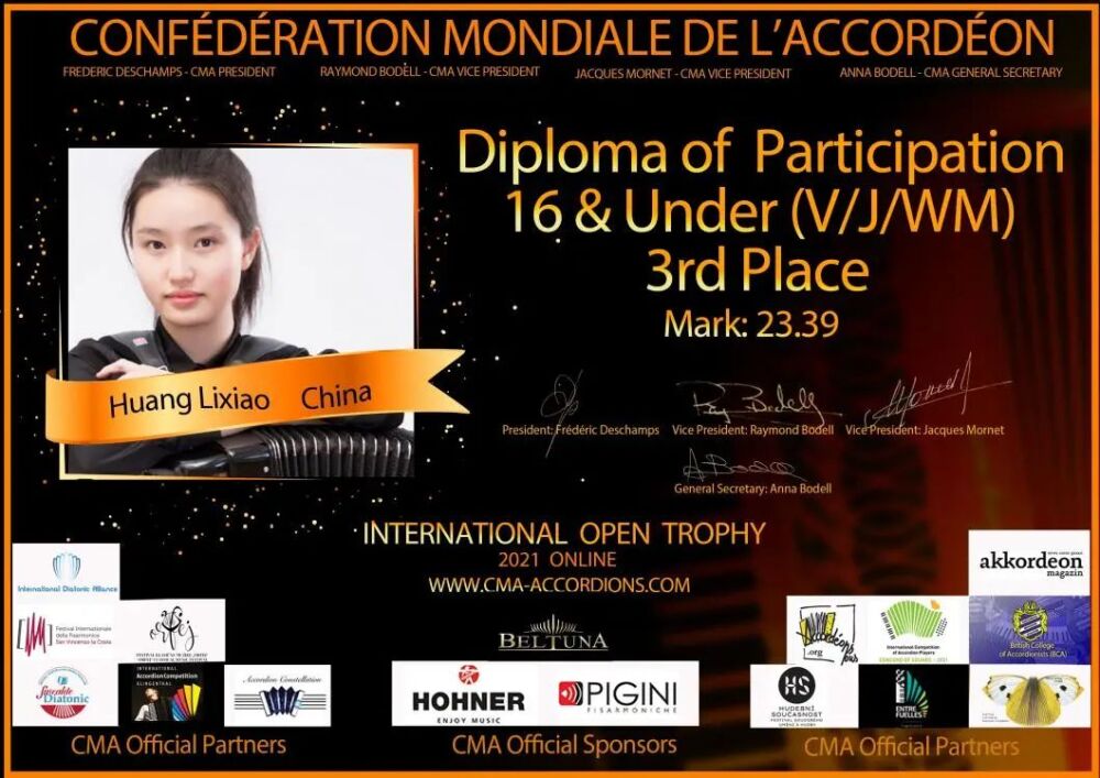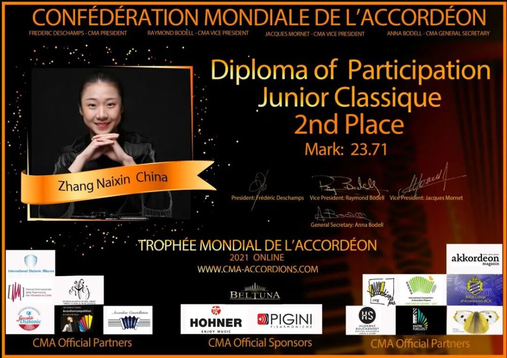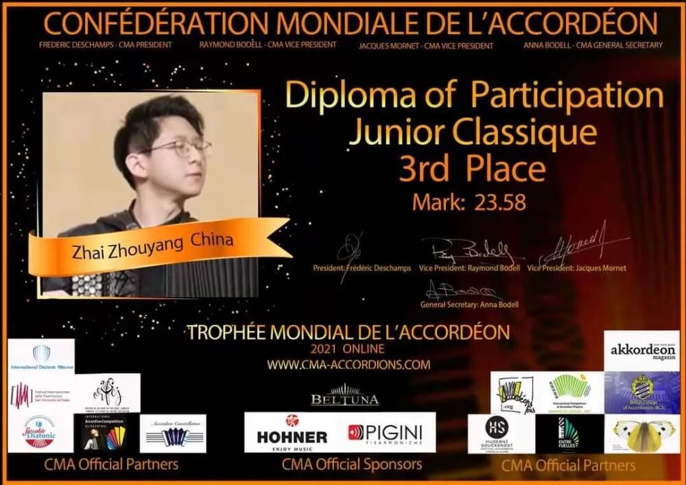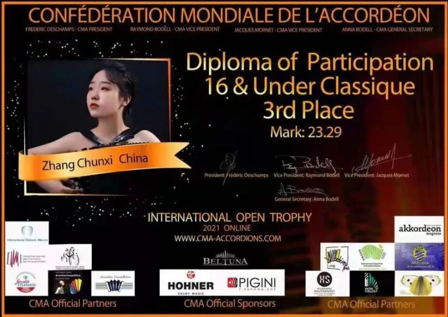 始于1951年的手风琴世锦赛是手风琴业界历史最为悠久也是国际上最为重要的赛事之一,由世界手风琴协会(la Confédération Mondiale de l’Accordéon)主办,每年会在不同的国家举办。由于新冠疫情,今年的比赛及音乐会活动继续在线上进行。从国内赛区选拔到国际赛区正式比赛,KY开元选手在此次比赛中都充分展现了自己的风采,得到国内外手风琴界的广泛认可和赞扬,为KY开元争得了荣誉。