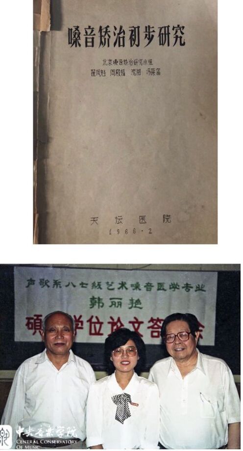 上,20世纪60年代,沈湘与时在中央歌剧舞剧院(现中央歌剧院)工作的冯葆富、社科院语言所周殿福、天坛医院耳鼻喉科主任翟凤魁组成“北京嗓音矫治研究小组”,图为该小组编写的书稿。
