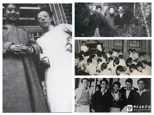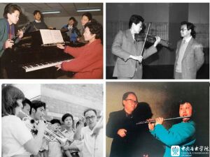 赵沨当时截留的部分非本校派出的归国留学生:管弦系陶纯孝(上左)、王振山(上右)、柏林(下左)、王永新(下右)老师。