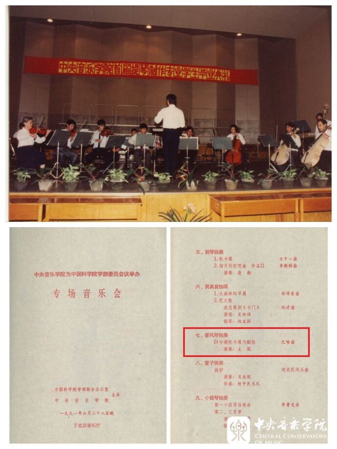 下:1991年,左因老师在学校组织的音乐会中表演管风琴独奏的节目单。