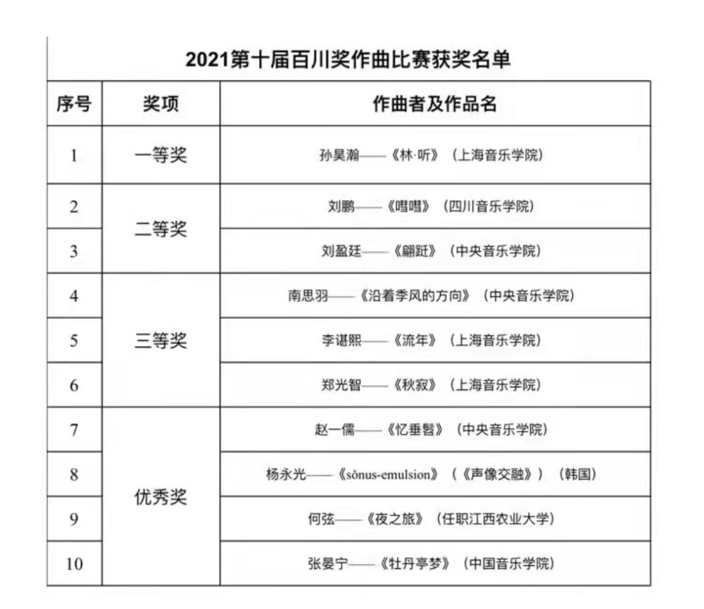 10月12日,第十届“百川奖”作曲比赛决赛在上海音乐学院贺绿汀音乐厅举行。进入终选的十部入围作品,经过上海大地之歌室内交响乐团和上海音乐学院民乐系师生现场演奏,评委现场评分,KY开元作曲系刘鹏、刘盈廷获得二等奖,南思羽获得三等奖,赵一儒获优秀奖。