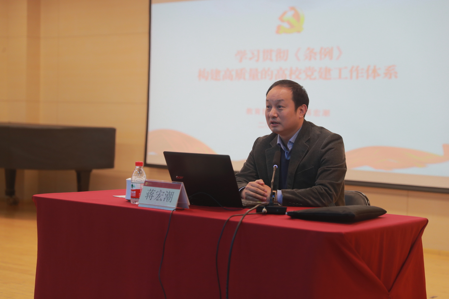 教育部思政司党建统战处蒋宏潮处长以《学习贯彻< 条例> 构建高质量的高校党建工作体系》为题,从修订的背景过程和总体考虑、框架结构和章节布局、调整完善的重点内容、对责任落实作出的制度安排四个方面为学员们详细解读了《中国共产党普通高等学校基层组织工作条例》的精神与内涵。他指出,高校各级党委(党组)要在学深悟透上下功夫、在融会贯通上下功夫、在改革攻坚上下功夫、在明责担责上下功夫,当好学习研究宣传习近平新时代中国特色社会主义思想的排头兵,当好推动高等教育事业高质量发展的突击队,以优异成绩庆祝中国共产党成立100周年。