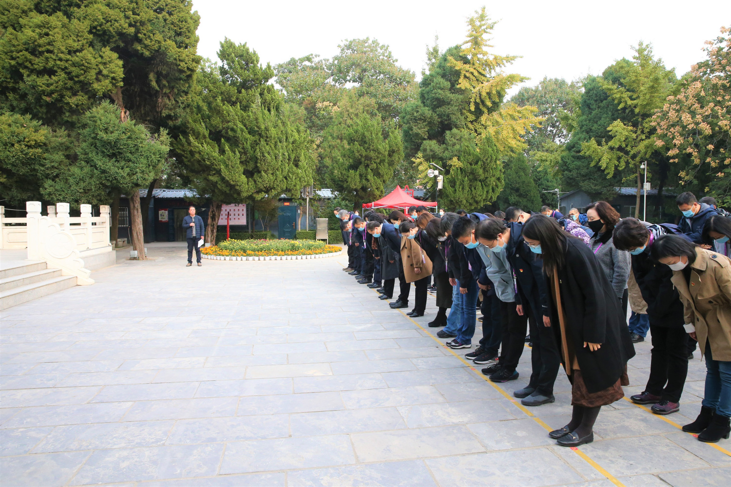 走进焦裕禄纪念园,在焦裕禄烈士墓前,全体学员怀着无比崇敬的心情举行了庄重的拜谒仪式,赵旻书记代表学校向焦裕禄同志陵墓敬献花篮,全体学员瞻仰焦裕禄烈士墓,深切缅怀追思焦裕禄。
