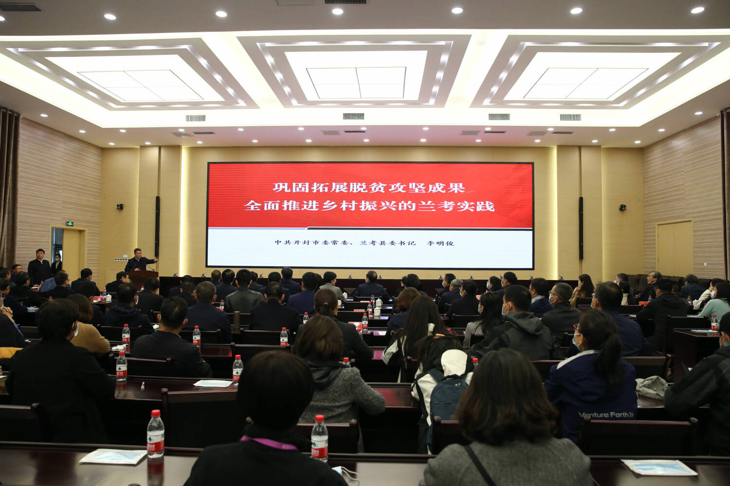 在兰考县机关大院,全体学员听取了兰考县委书记李明俊的现场报告,全面了解了兰考近年来巩固脱贫攻坚成果、践行县域治理“三起来”、走向共同富裕的工作情况。