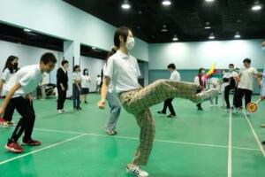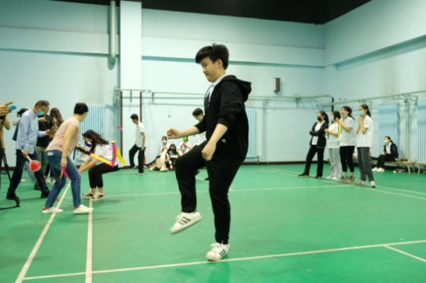 为了缓解紧张排练带来的压力、丰富团员们的生活,在团员们排练和学习的间歇,还安排了跳绳、踢毽、托球跑等活动文体活动,欢乐的气氛增进了团员之间的友情。