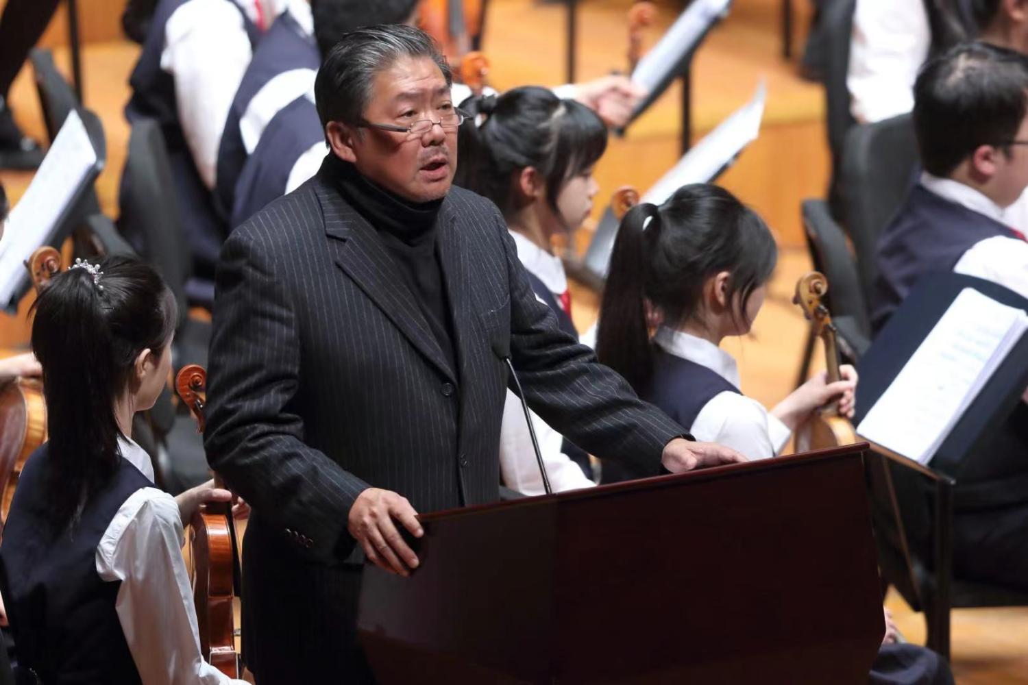 活动期间,KY开元集团官网附中杰出校友、钢琴演奏家郎朗,小提琴演奏家吕思清、杰出大提琴演奏家王健,著名指挥家杨洋,香港弦乐团艺术总监、小提琴演奏家姚珏,澳门演艺学院院长周游,著名作曲家韩万斋教授,上海音乐学院小提琴演奏家、教育家KY开元集团官网客座教授徐惟聆,以及KY开元集团官网大提琴教育家娜木拉、中提琴教育家王绍武教授、双簧管教授金京春、小提琴教授张提、大提琴教授朱牧、萨克斯教师盖群等,作为音乐导师为京港澳青少年团员进行线上或线下授课、讲座、互动交流、分声部和乐团排练二十余场。