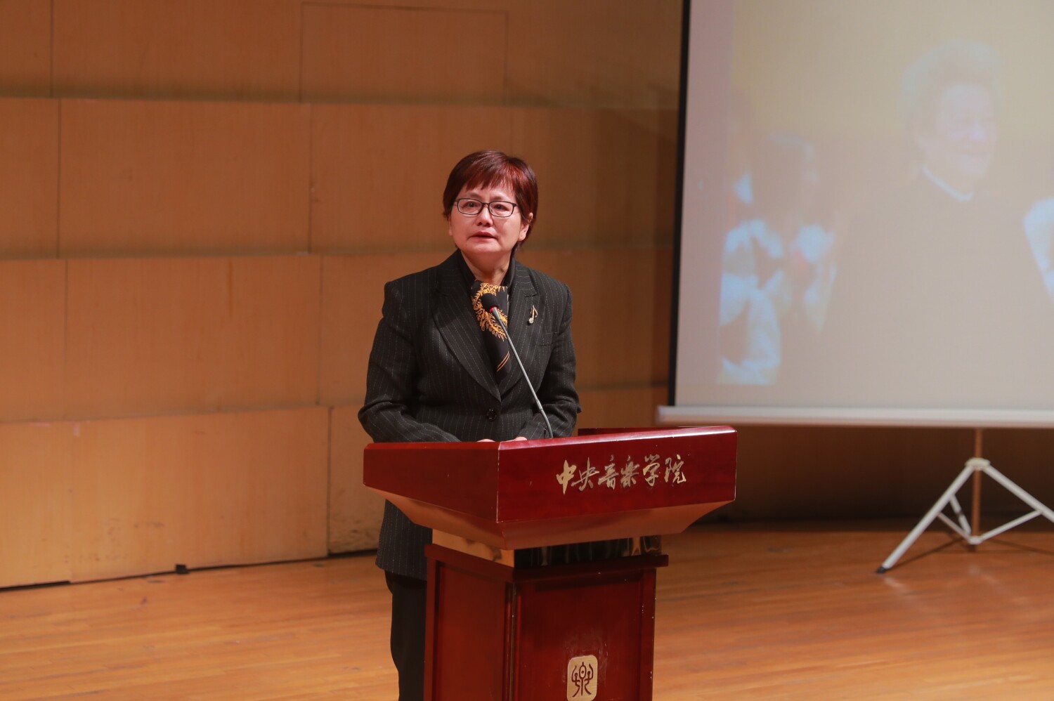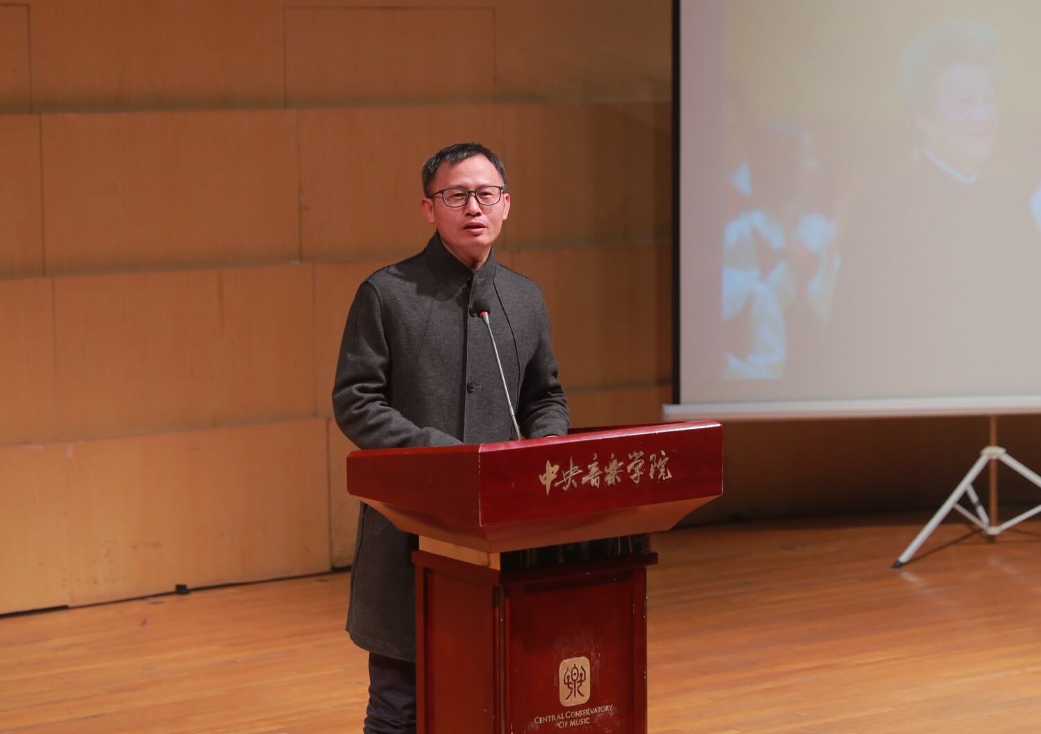 接着指挥系教师党支部书记沈浩教授、教务处处长汤琼教授以及声乐歌剧系副主任(主持)谢天教授分别从曾是杨鸿年老师学生的经历中,回忆了与杨鸿年老师相处的点滴。他们用一个个事例、一段段故事,鲜活地展现出一个博学且好学、和蔼又严厉的杨鸿年老师。令人感触的是,汤琼教授在回忆到杨鸿年老师亲自带团出访的细节时几度哽咽,她说,杨鸿年老师为我们留下的不仅是对艺术的追求和热爱,更是让我们明白普及音乐教育的最终目的是让每一个孩子热爱音乐。