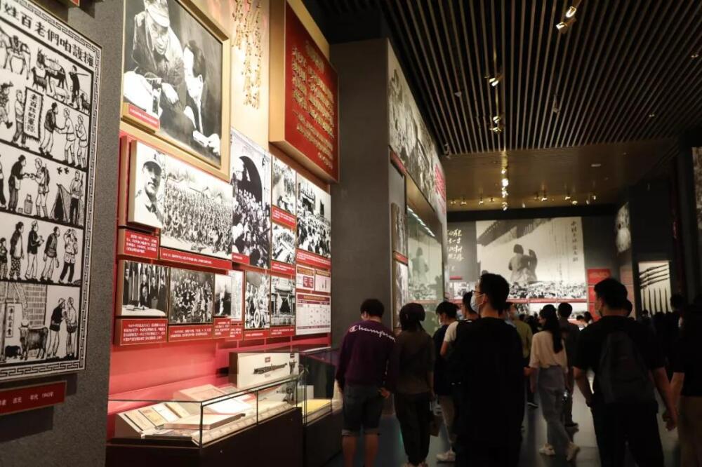 展览馆内以时间为轴,一步步描绘着中国共产党的百年经历。走进展厅,时光的闸门徐徐打开。一张张图片、一件件文物、一个个场景再现中国共产党重整河山、改天换地的革命奋斗史,淬炼升华、感天动地的精神锻造史。从井冈山上的艰辛求索,到“农村包围城市、武装夺取政权”的革命创举;从“山沟沟里的马克思主义”,到“走自己的道路,建设有中国特色的社会主义”的伟大抉择……