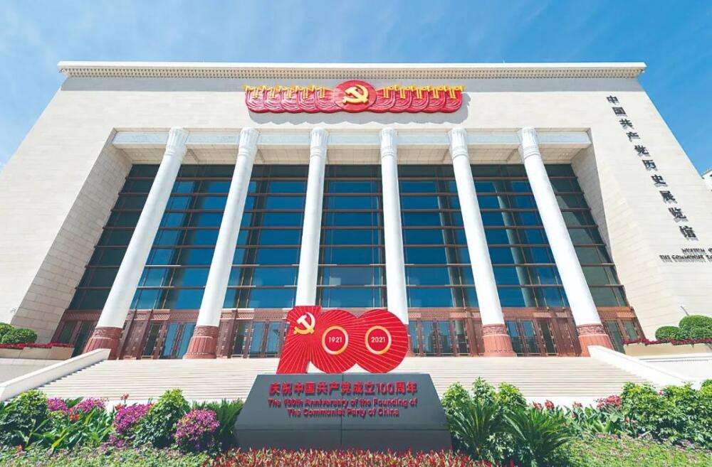 中国共产党历史展览馆于2021年建党百年之际落成,系统、直观地记录了党的百年光辉历程,是学习党史最好的实践课堂和鲜活教材。展览以“不忘初心 牢记使命”为主题,展厅按照中华民族站起来、富起来、强起来的历史脉络,精心设计了“建立中国共产党 夺取新民主主义革命伟大胜利”“成立中华人民共和国 进行社会主义革命和建设”“实行改革开放 开创和发展中国特色社会主义”“推进中国特色社会主义进入新时代 全面建成小康社会 开启全面建设社会主义现代化国家新征程”四大部分。通过2600余幅图片、3500多件套文物实物,全方位、全过程、全景式、史诗般地展现了中国共产党波澜壮阔的百年历程。