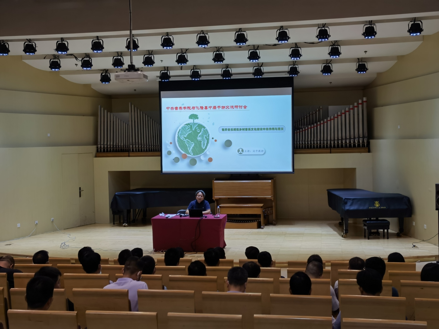 会后,音乐学系主任安平教授以《世界音乐观在乡村音乐文化建设中的作用与意义》为题,为学员们讲授了一堂生动的专家讲座,通过对丰富的实践案例讲解,从音乐文化建设、乡村振兴两个方面与大家进行交流互动,受到学员们的一致好评。