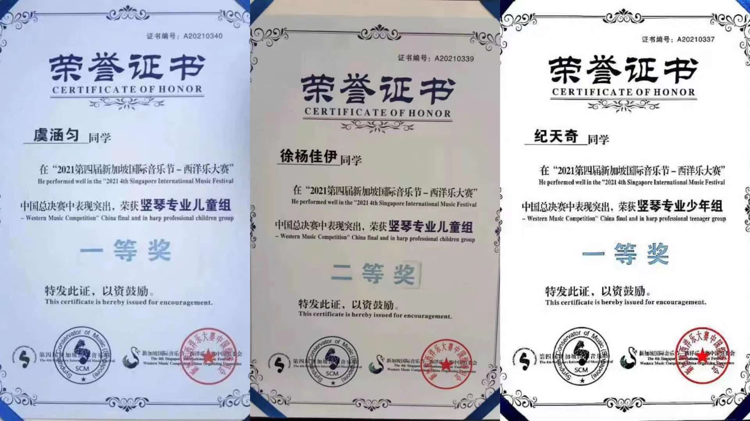 2020年,塞尔维亚国际音乐比赛中获得二等奖、第五届香港国际竖琴比赛中获得第四名。