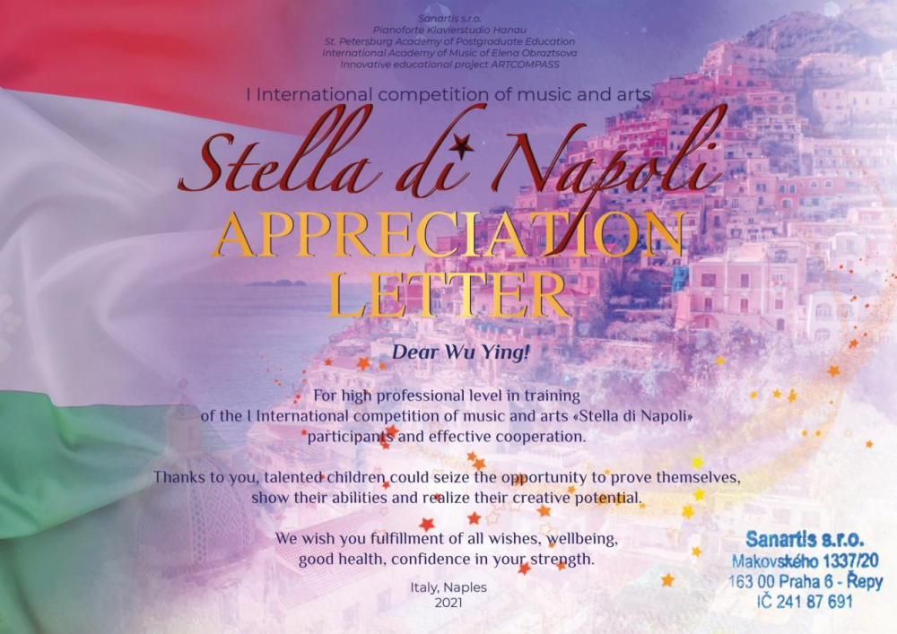 2.王昕然荣获2021年意大利那不勒斯之星国际钢琴比赛第一名
