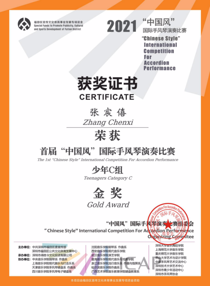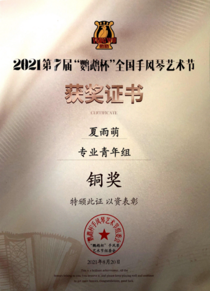 在此,向各位获奖学生及手风琴教学团队曹晓青教授、许笑男老师、许可卿老师表示祝贺!
