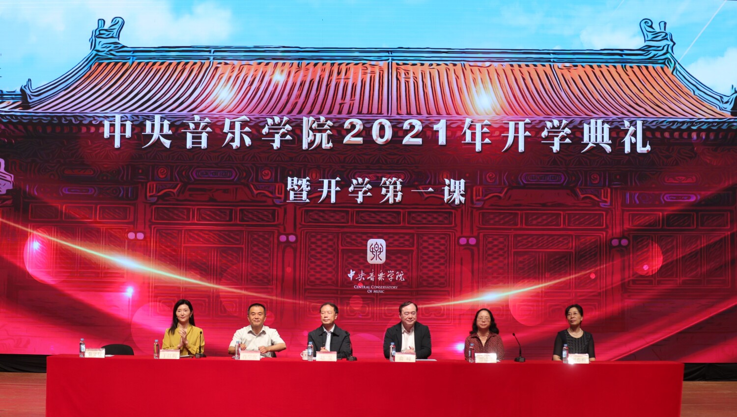2021级全体本科新生和新入职教师及全体校领导、各院系领导在歌剧音乐厅主会场参加典礼,2021级全体研究生在教学楼通过视频参会。大会由副校长秦文琛主持。