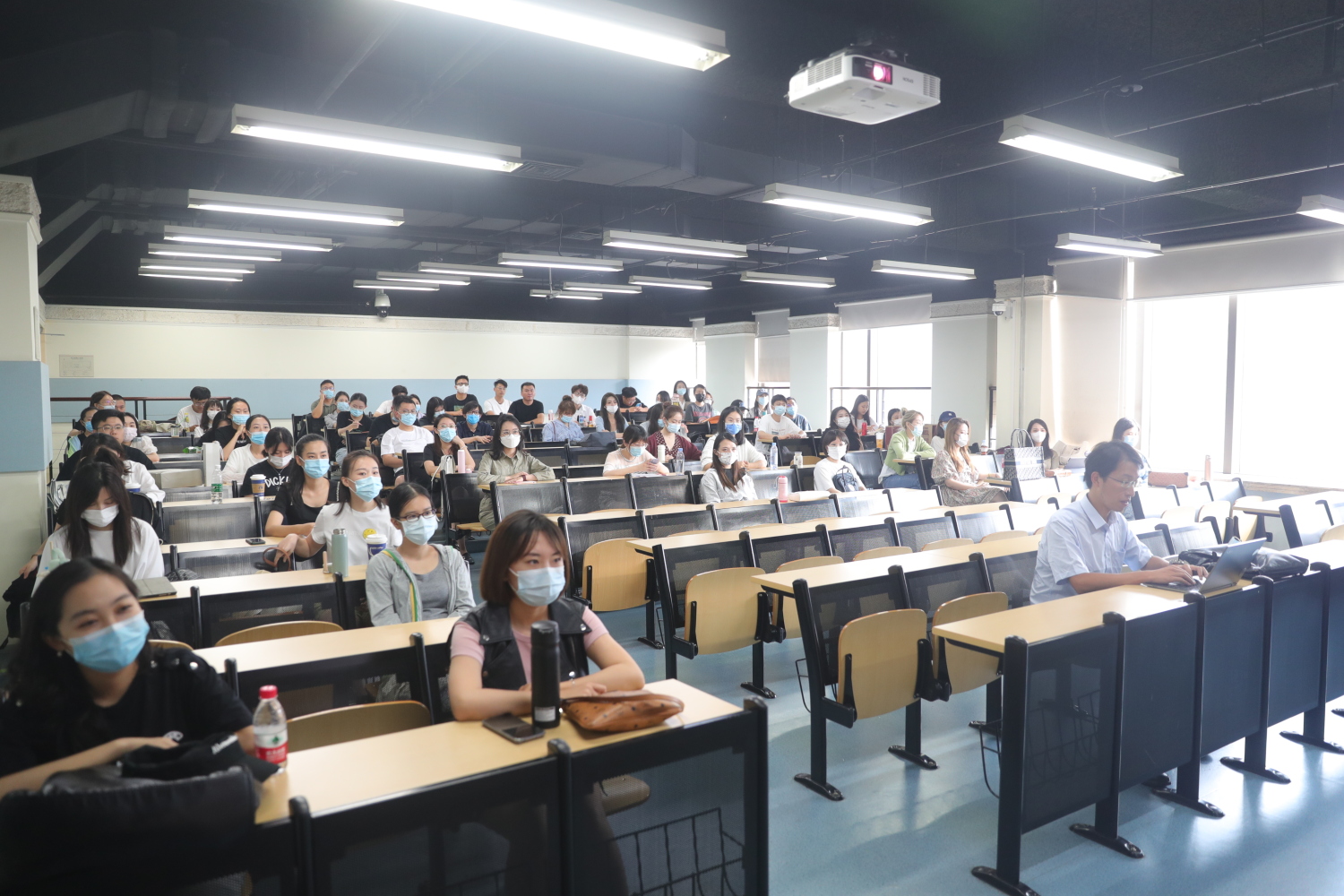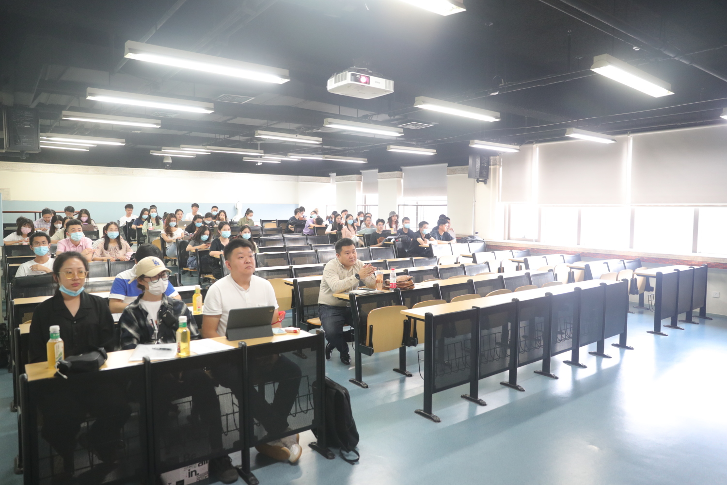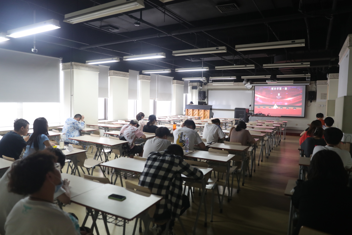 2021级全体研究生在教学楼分会场通过视频参会