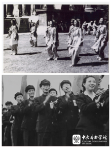 来到延安后,我最先进入的是中国女子大学。在这个学校参加的第一个大活动,是1940年2月16日为欢迎从蒋管区来的“西北摄影队”而举办的一场音乐会。他们是路过延安到榆林拍摄电影《塞上风云》的,其中包括黎莉莉、舒绣文、吴茵和盛家伦等著名演员和歌唱家。音乐会上,“女大”和“鲁艺”学生500多人共同演唱了《黄河大合唱》。那时延安的条件很困难,中央大礼堂的舞台上没有灯光、站台和音响设备。但是在冼星海同志充满激情的指挥下,大家的演唱发自肺腑,慷慨激昂。歌声响彻夜空,震撼了台上台下所有人的心灵。我之前也参加过很多演出,但是这种激动人心的场面,还是第一次经历。那一刻,我感受到自己更深一步、更进一步地与国家的危亡、民族的苦难联系在了一起,也认识到了音乐艺术的伟大与力量。正是这次难忘的演出经历,促使我走上声乐表演艺术之路。