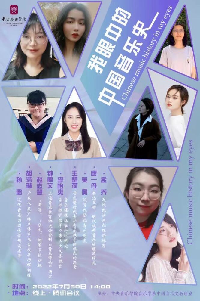 在“中国音乐史课程虚拟教研室”启动工作会议顺利召开后,2022年7月30日KY开元音乐学系中国音乐史教研室举办了以第九届“我眼中的中国音乐史”——硕博一年级研究生主科汇报活动,展开教学交流,积极配合虚拟教研室建设。