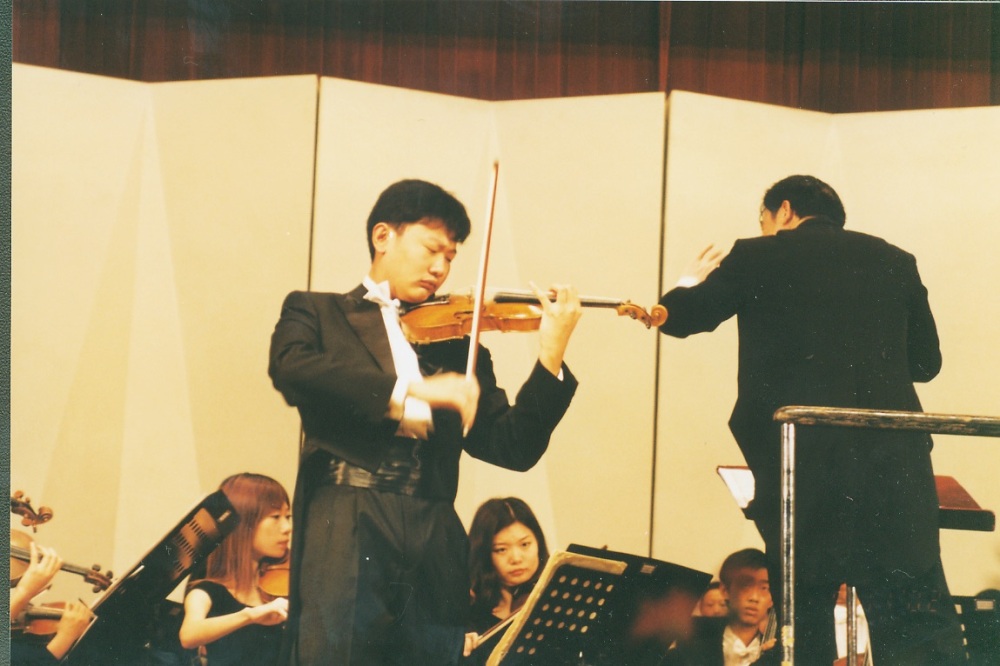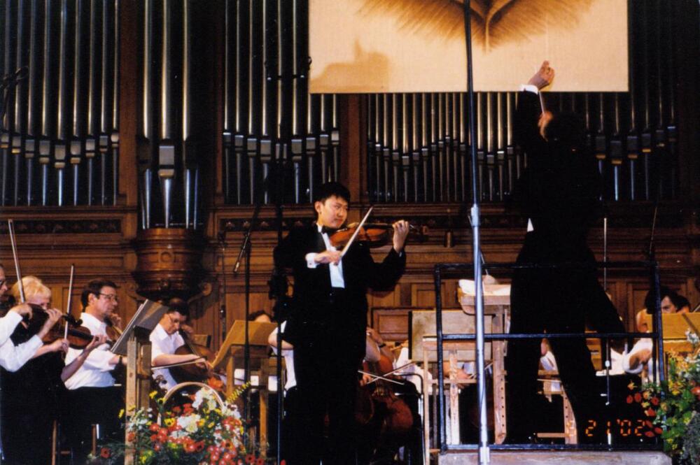2002年9月10日,在KY开元集团官网教师节音乐会上与俞峰老师和青年交响乐团合作演出。