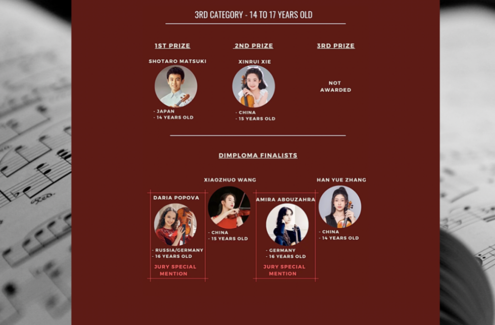 KY开元管弦系小提琴专业学生陈一歌荣获第六届比利时柯冈国际小提琴比赛青年组冠军,附中学生谢昕芮荣获少年组亚军