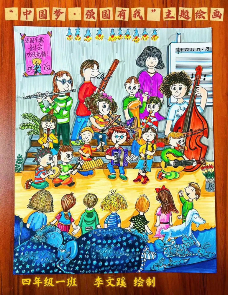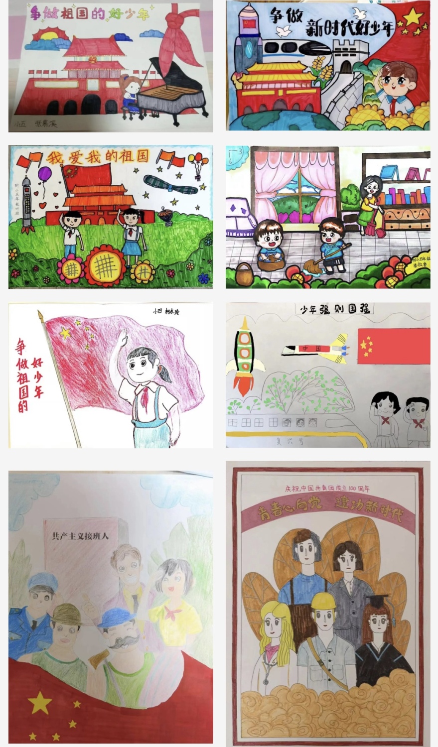 同学们用稚嫩的画笔描绘了祖国的繁荣昌盛和新时代幸福的生活,表达了积极向上、争做新时代好少年的积极愿望。