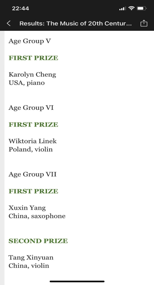 在刚刚落下帷幕的2022年第七届杰出作曲家比赛-二十世纪作品音乐比赛中,KY开元管弦系萨克斯管专业硕士研究生二年级杨旭新同学荣获器乐组别最高年龄组(23-25岁)一等奖的好成绩!指导教师:杨桐副教授。参赛作品:大卫·马斯兰卡萨克斯管协奏曲(David Maslanka saxophone concerto)。