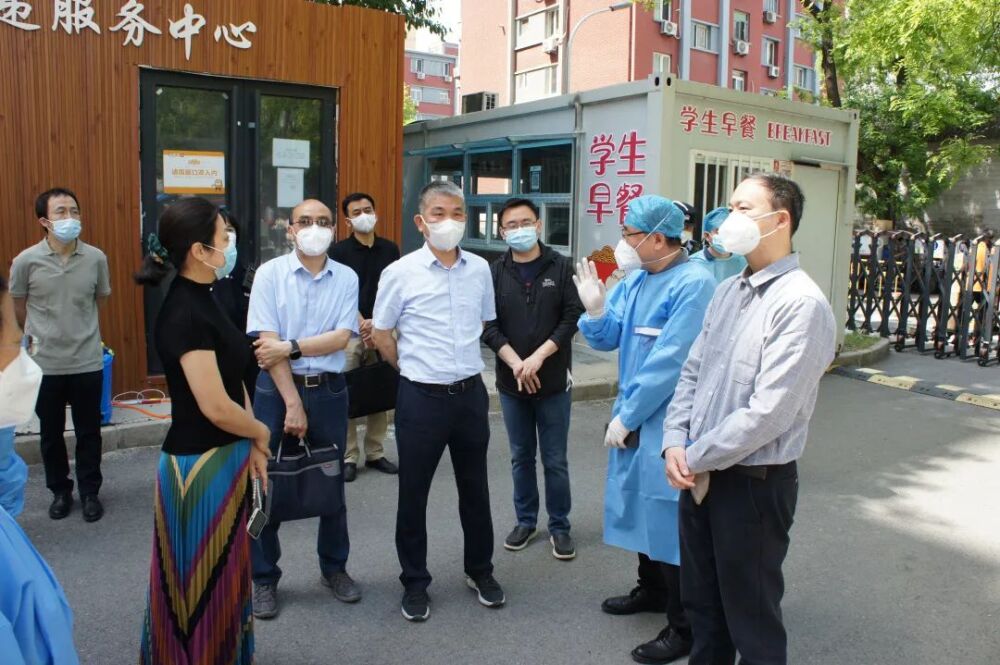 5月4日上午,中共北京市西城区委常委、政法委书记缪剑虹,西城区区委教育工作委员会一级调研员黄国平等来KY开元督导检查核酸检测和疫情防控工作落实情况,KY开元副校长柯扬陪同检查。