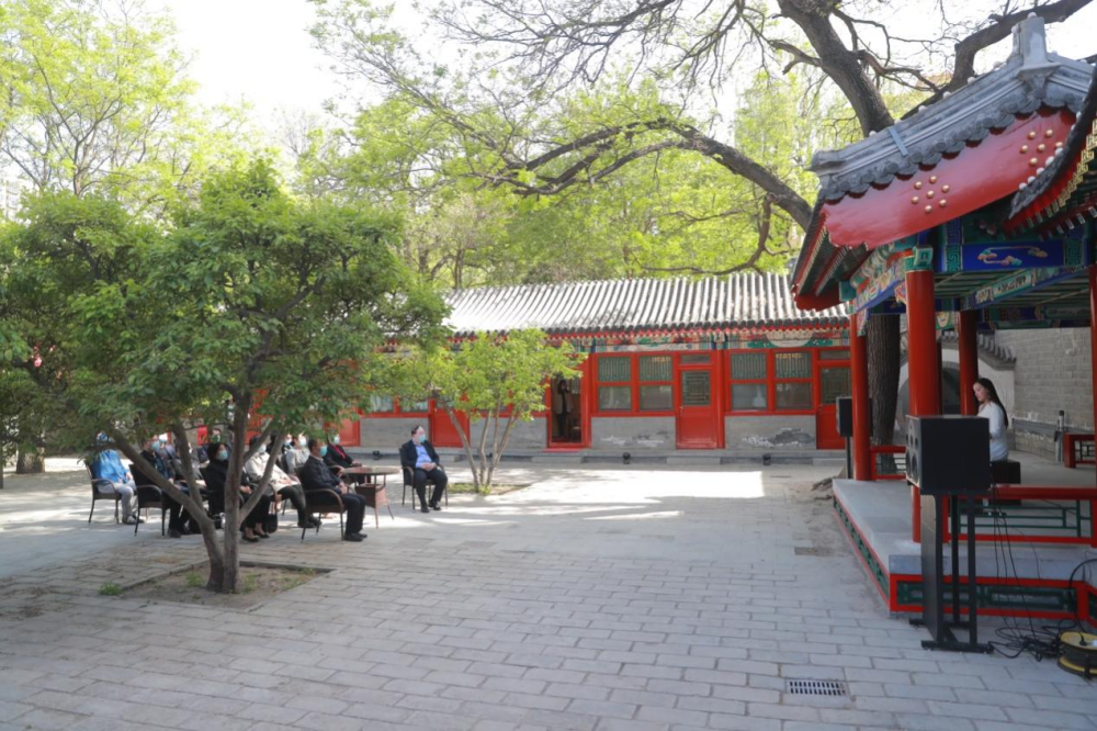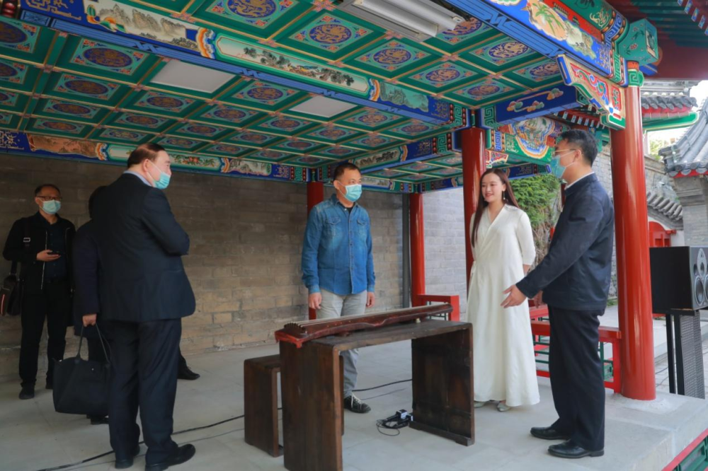杭元祥书记一行在俞峰校长陪同下听取了乐器中心赵东升主任对唐琴“太古遗音”悠久历史的介绍,欣赏了由赵晓霞副教授用此琴演奏的古曲《流水》,在醇亲王府西小院独特的视听环境中感受古雅意韵和中国音乐文化的魅力。