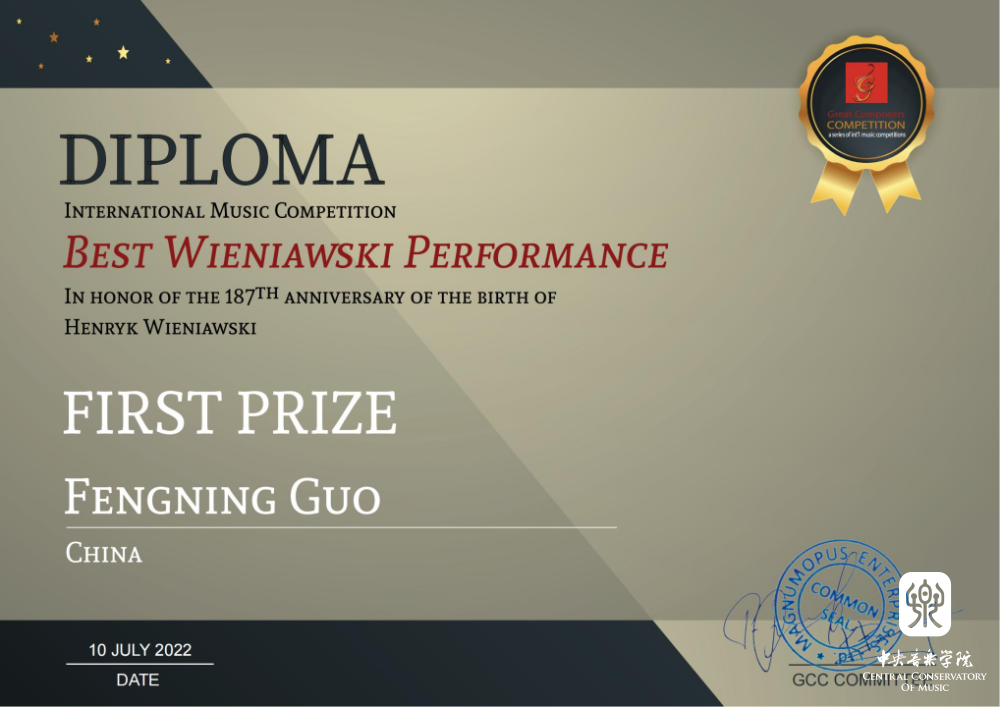 附中小提琴专业学生郭丰宁荣获维尼亚夫斯基作品比赛一等奖