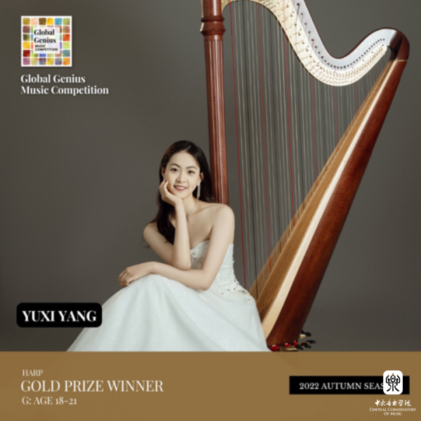2021级管弦系本科竖琴专业学生杨雨茜于2022年11月,荣获欧洲古典音乐奖(ECM)金奖。