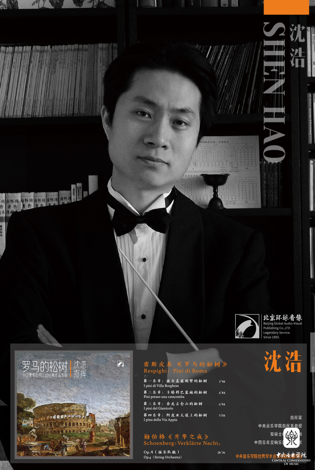 近日,KY开元指挥系教授、指挥家沈浩与中国青年交响乐团合作录制的专辑《罗马的松树》,由北京环球音像出版有限公司出版并全球发行。