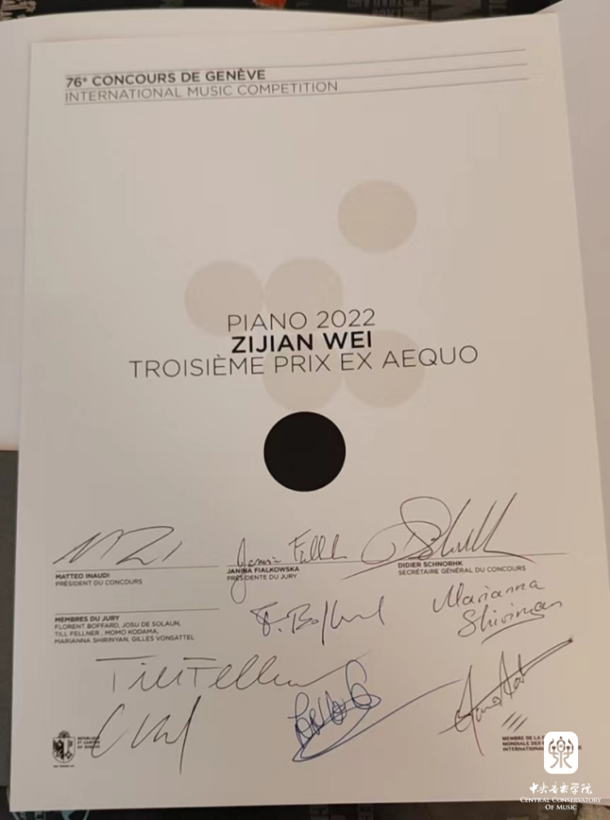 当地时间2022年11月3日晚,第76届日内瓦国际钢琴大赛大奖出炉,中国青年钢琴家韦子健凭借精湛的演奏技艺,稳定的发挥,获得大赛三等奖。