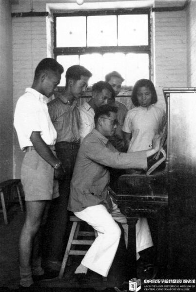 1930年考入上海国立音乐专科学校,与同学及朋友合影