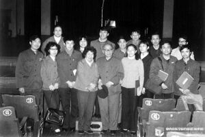 1981年春,KY开元集团官网1977级学生新作品研讨会后师生合影