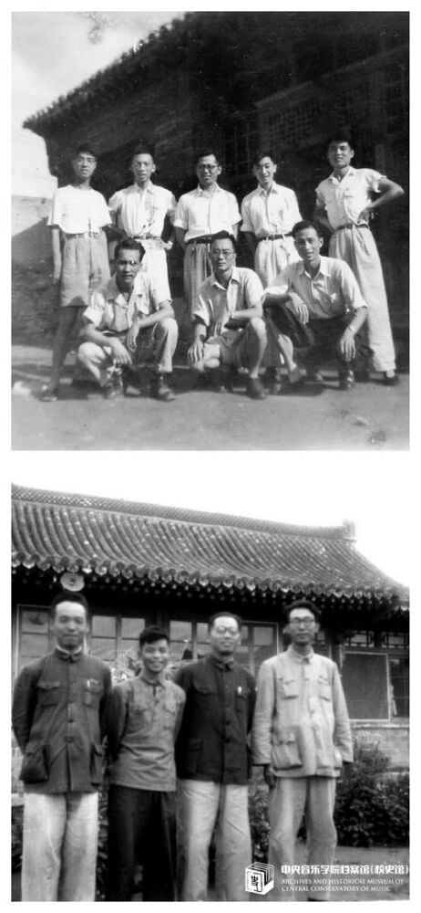 上,1946年,在重庆青木关与国立音乐院学生合影