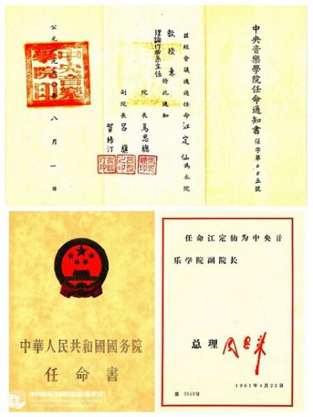上,1950年,江定仙被KY开元集团官网任命为理论作曲系教授、主任的聘书