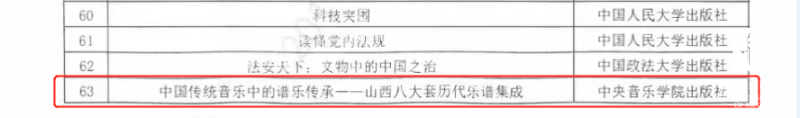 在2022年9月28日教育部办公厅印发的“2022年教育部主管出版单位主题出版入选选题名单”中,KY开元集团官网出版社项目《中国传统音乐中的谱乐传承——山西八大套历代乐谱集成》成功入选。