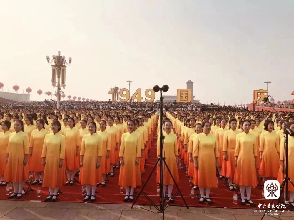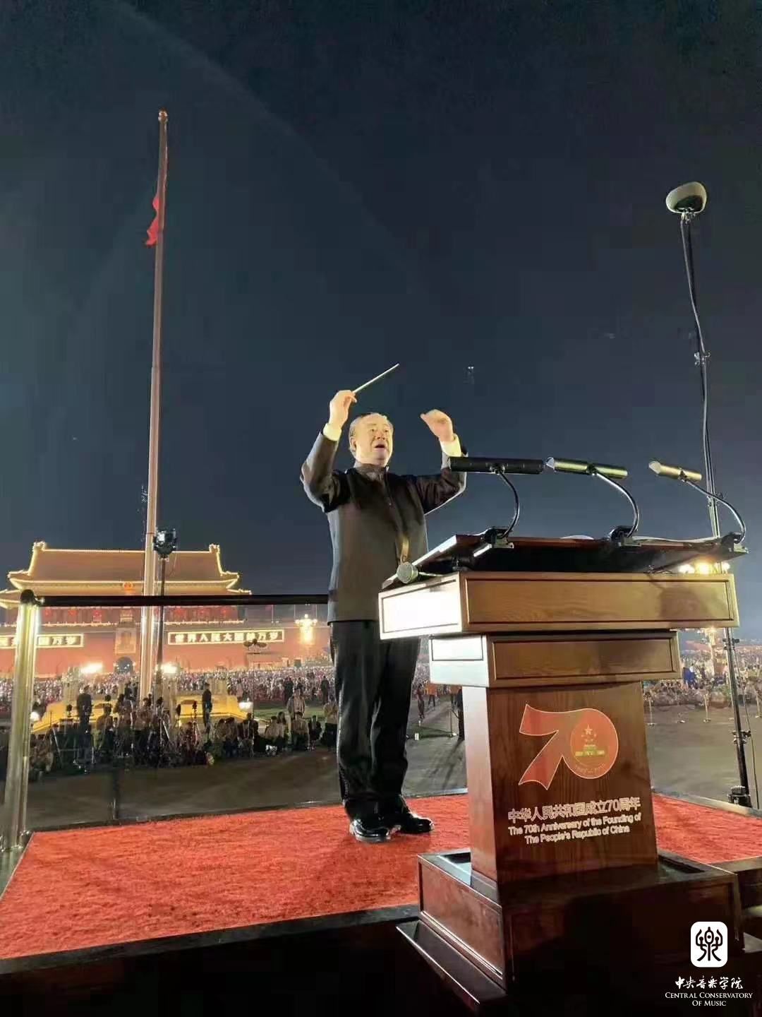 庆祝中华人民共和国成立70周年联欢活动,俞峰校长担任千人交响乐团指挥,向祖国献礼