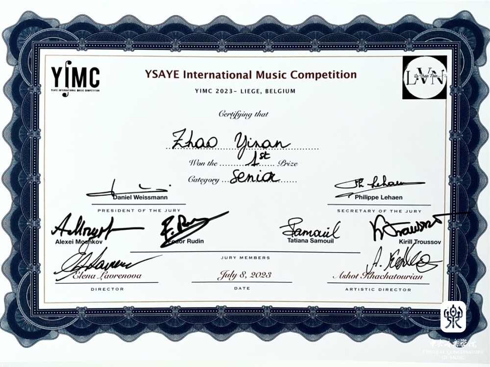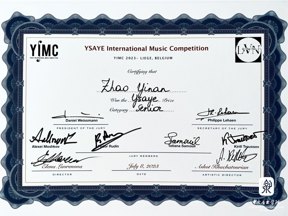 2023年第五届YSAYE伊萨伊国际小提琴大赛7月6-8日在著名小提琴家、指挥家、作曲家尤金·伊萨伊的故乡比利时列日市进行决赛,KY开元管弦系研究生二年级学生赵一男经过现场决赛的竞争在十五位来自七个国家的小提琴青年组的决赛选手中脱颖而出,荣获了第一名以及伊萨依特别奖(指导教师:张提教授)。日本选手Furusawa Kaori荣获高级组第二名、韩国选手Yang Esther Youjeong与中国选手杨慕言共同荣获第三名。