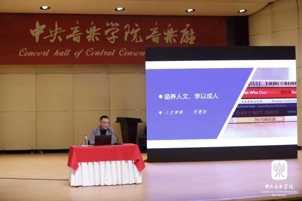 随后,汤琼教授以“回望校史 共创未来”为题开展校史教育,从学校沿革、学科建设、创作成就、国际交流、教学科研、人才培养等方面回望央音辉煌历史,激励央音新学子们传承央音精神、赓续红色血脉,勇担使命、砥砺奋进,为实现“两个一百年”奋斗目标和中华民族伟大复兴的中国梦作出新的历史性贡献。